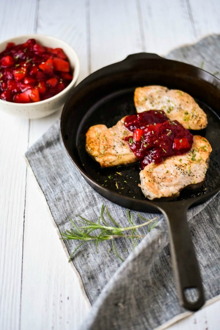 Apple Cranberry Sauce with Rosemary Pork Chops