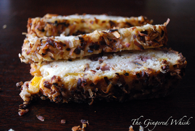 - Sprinkle the top of the loaf with remaining 1/2 cup of coconut (the untoasted stuff).